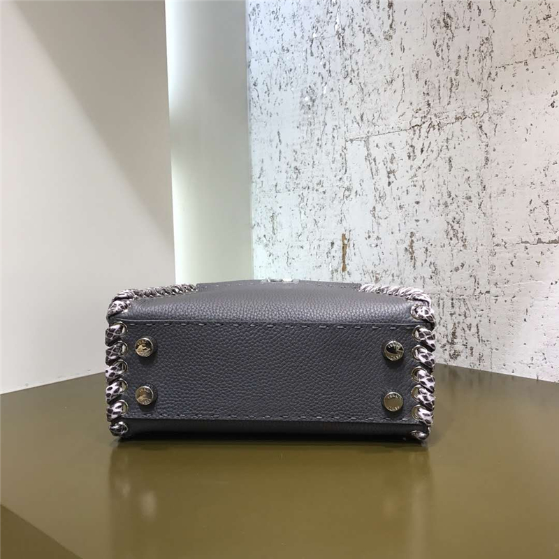 • 3105S FENDI芬迪 MINI 邊緣蛇皮編織裝飾 荔枝紋牛皮手提包 深灰色