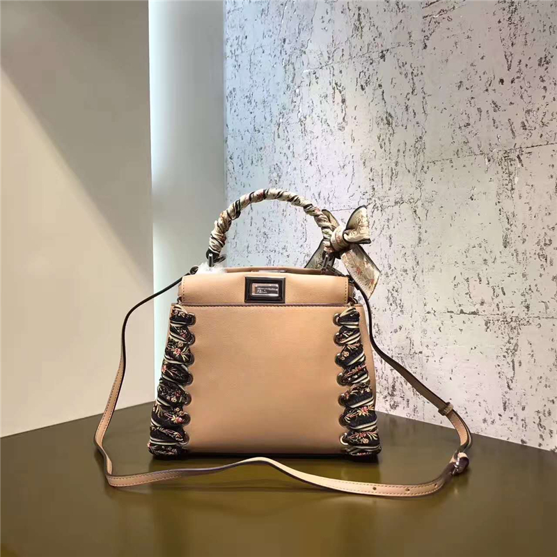 • Fendi 芬迪 Peekaboo 2017新款小牛皮編織手柄手提包 藕粉色