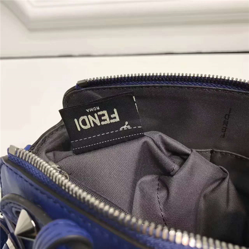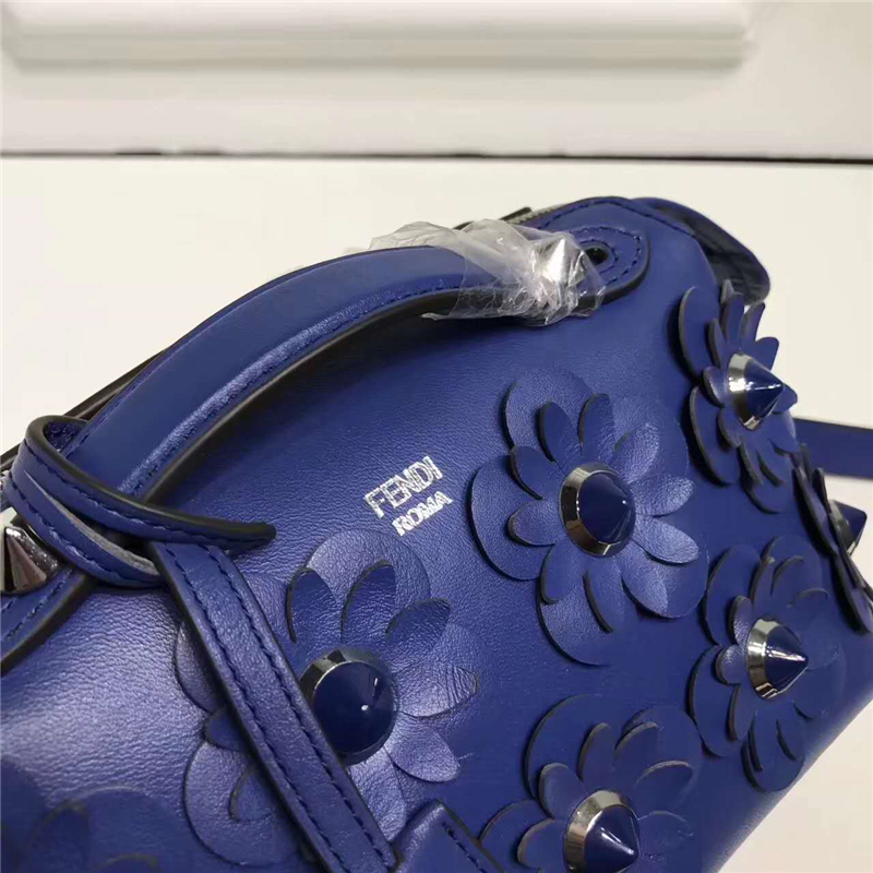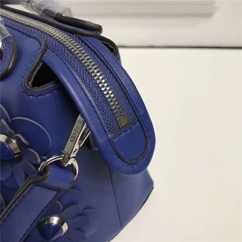 • 8149A FENDI 芬迪 波士頓小牛皮 花朵鉚釘飾 手提包挎包 藍色
