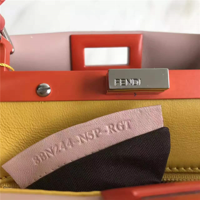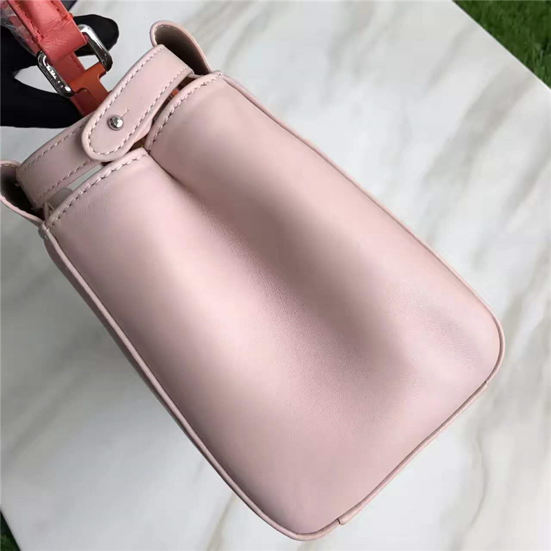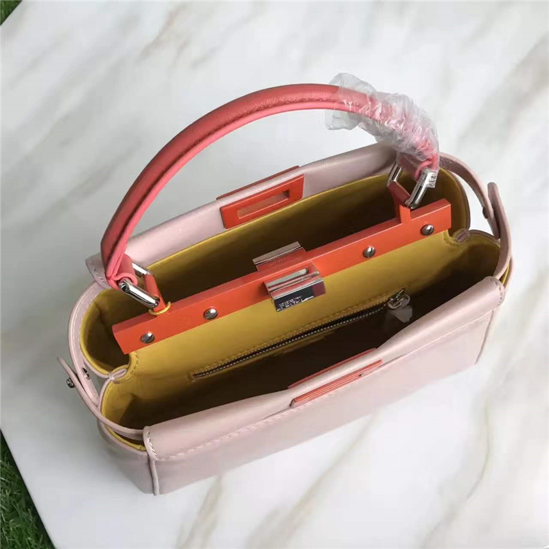 2590 FENDI 芬迪 拼色軟羊革 手提包 內袋 金屬配件 粉色