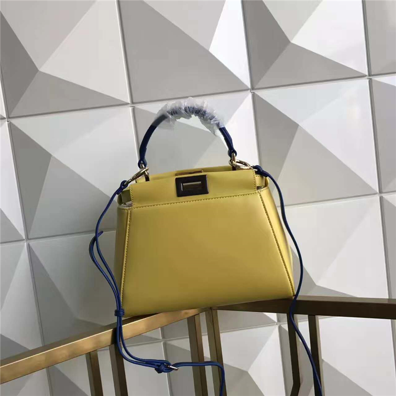 2590 FENDI 芬迪  拼色軟羊革 手提包  金屬配件 黃色