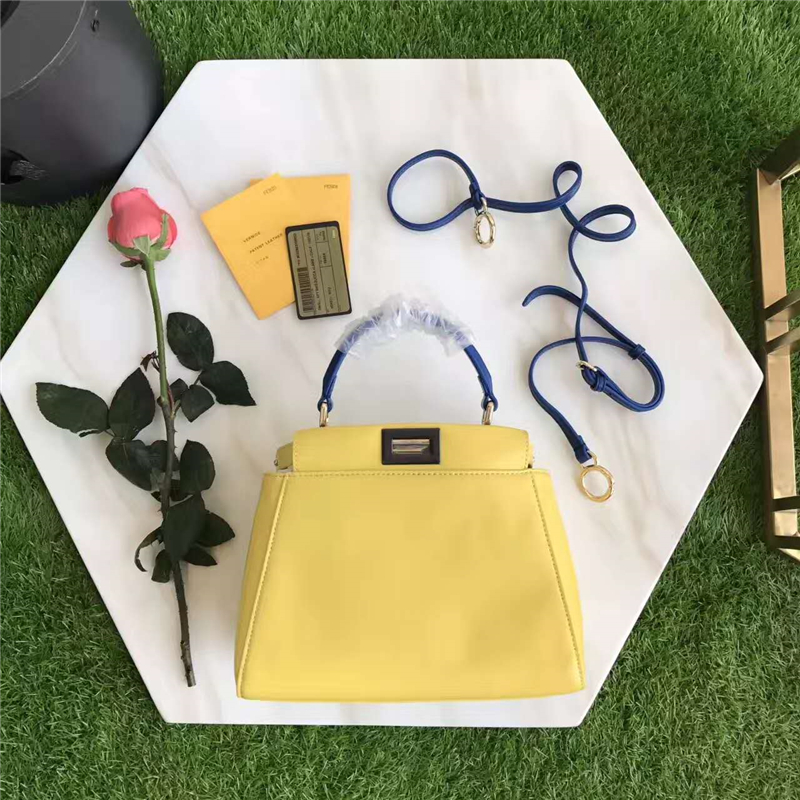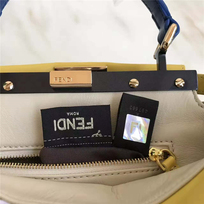 2590 FENDI 芬迪 拼色軟羊革 手提包 金屬配件 黃色