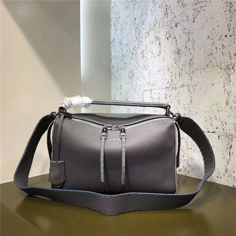• FENDI 芬迪 8762 2017新款 牛皮女士單肩手提包 羅馬波士頓包 深灰色