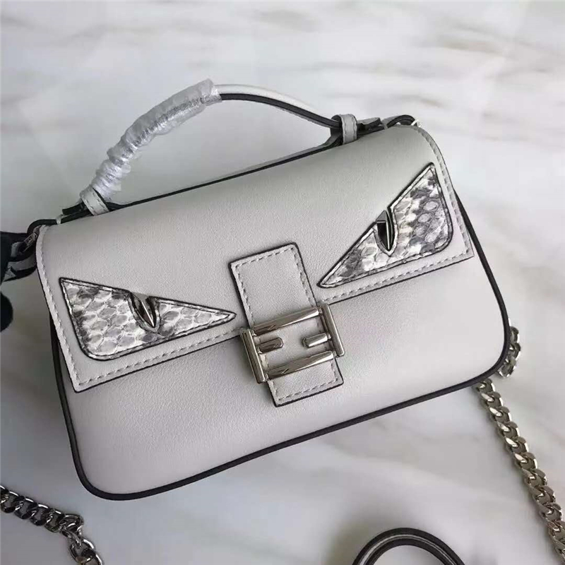 8765B FENDI 芬迪 DOUBLE MICRO BAGUETTE 眼睛圖案 鏈條包 白色