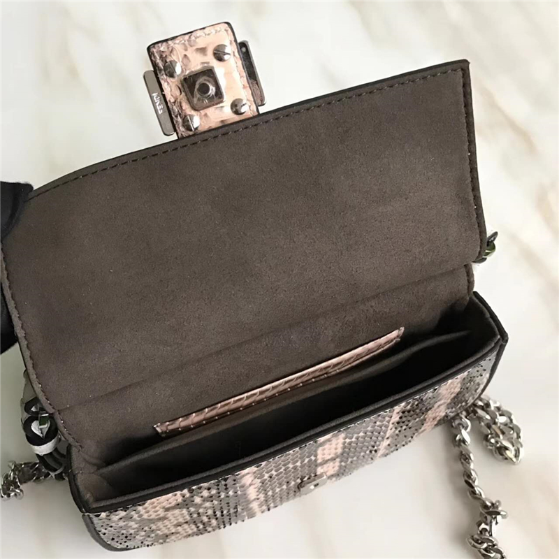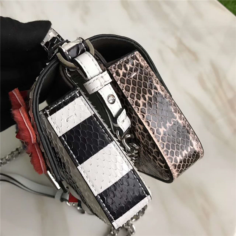 - 詳細(xì)介紹:FENDI 芬迪 時(shí)裝秀DOUBLE MICRO BAGUETTE采用五金鏈條鍍金鏈?zhǔn)郊鐜Ш徒饘倥浼|(zhì)感清新,色澤均勻,耐磨 耐用。由兩個(gè)包組成,一面是水蛇皮質(zhì),另一面則是蟒蛇皮質(zhì)。飾以多姿多彩的FLOWERLAND花朵。兩面均設(shè)有暗扣翻蓋 和裝飾性雙F標(biāo)志搭扣。兩面開(kāi)合。細(xì)致做工,色澤亮麗,造型簡(jiǎn)約大氣!
