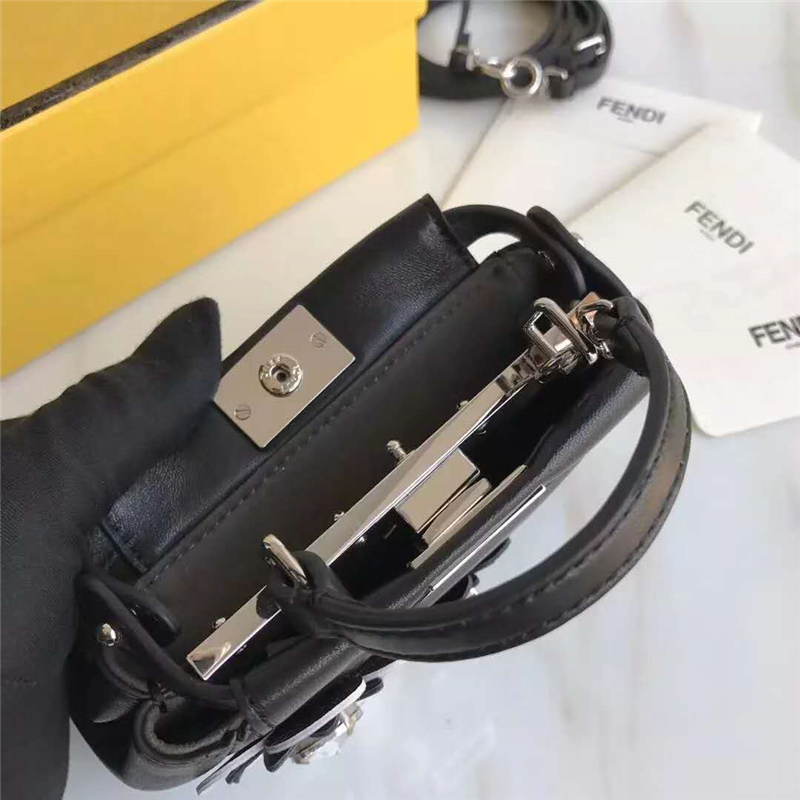 - 詳細(xì)介紹:FENDI 芬迪新款 時(shí)裝秀羊皮MICRO PEEKABOO 迷你手提包飾以銀色花朵裝飾細(xì)節(jié)。通過(guò)硬隔層袋分割出兩個(gè)內(nèi)部夾層,扭鎖和磁性按扣。單提手,附單側(cè)彈簧扣和可調(diào)節(jié)可拆卸纖細(xì)長(zhǎng)肩帶。金色飾面金屬配件。小巧迷人且有內(nèi)涵。