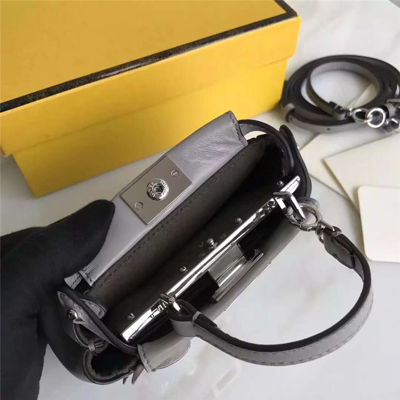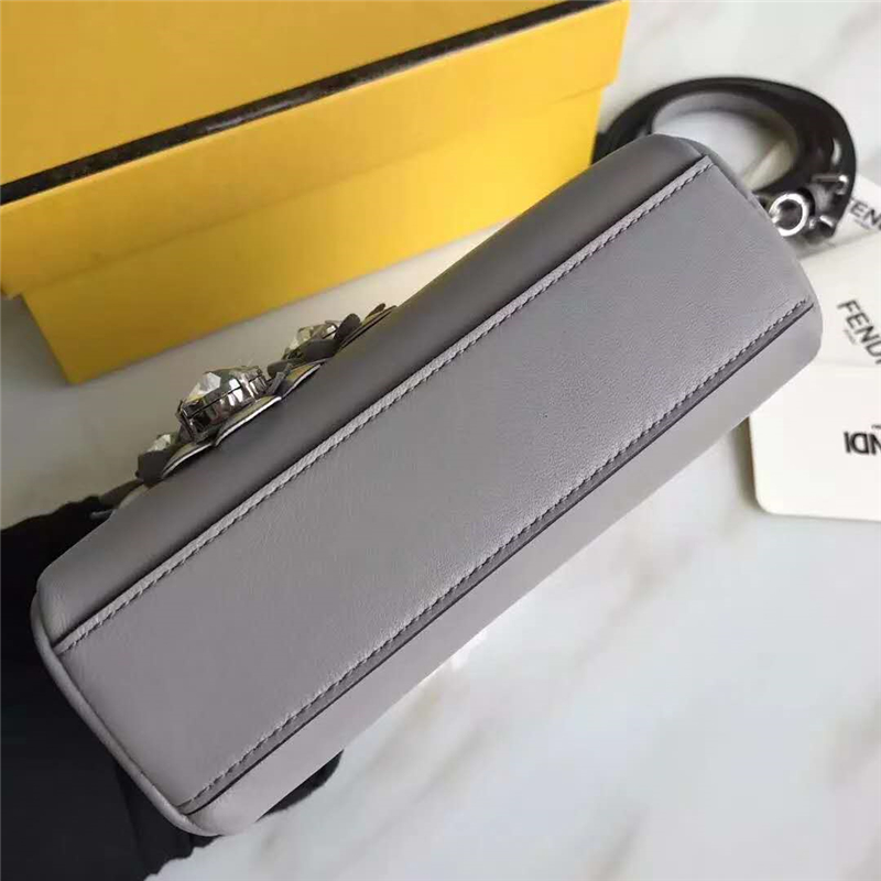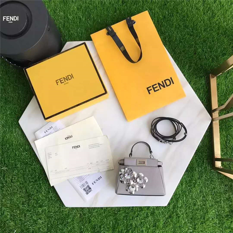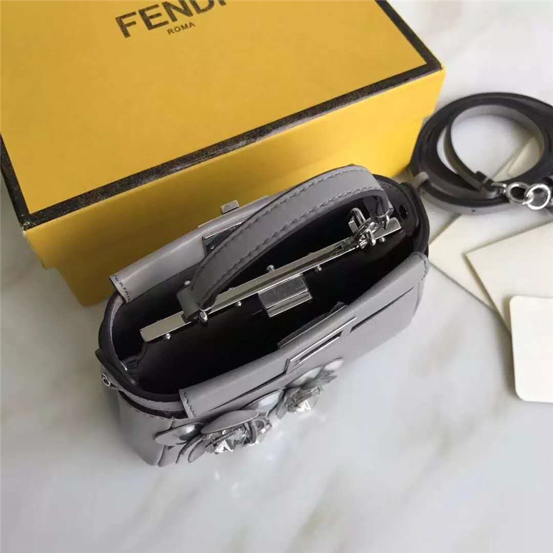 • FENDI 芬迪新款 時裝秀羊皮MICRO PEEKABOO 太陽花花朵小貓包 灰色