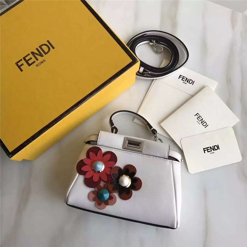 FENDI 芬迪新款  時(shí)裝秀羊皮MICRO PEEKABOO 太陽花花朵小貓包   白色