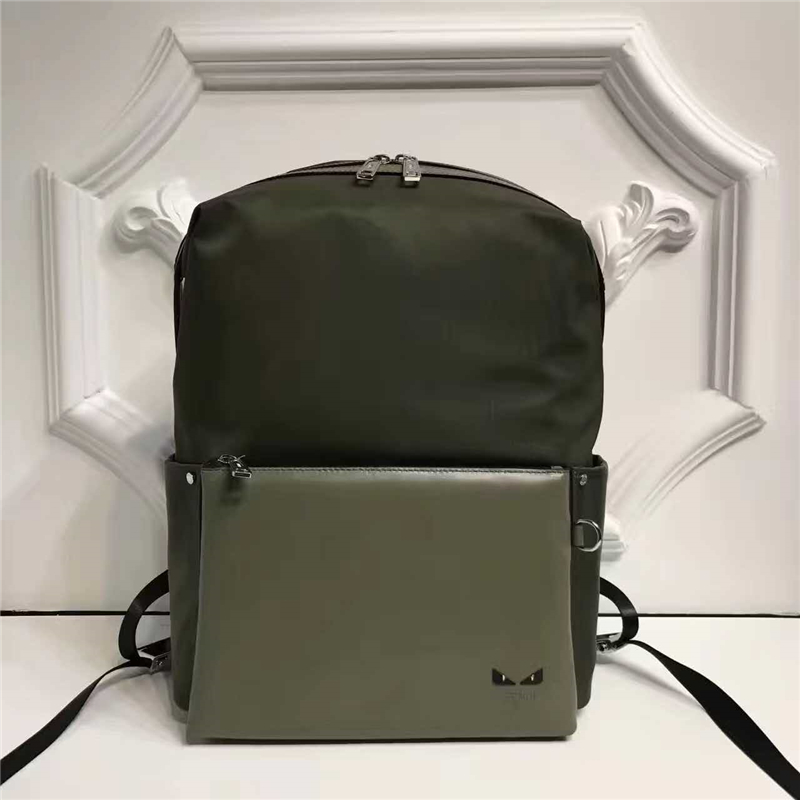 - Fendi 芬迪新款 尼龍拼皮 BAG BUGS眼睛圖案 雙肩背包 軍綠色