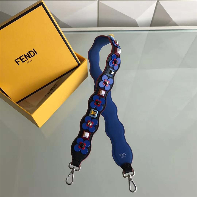 822 Fendi芬迪 拼色肩帶 花朵金字塔形鉚釘 炫彩短肩帶 藍(lán)拼黑