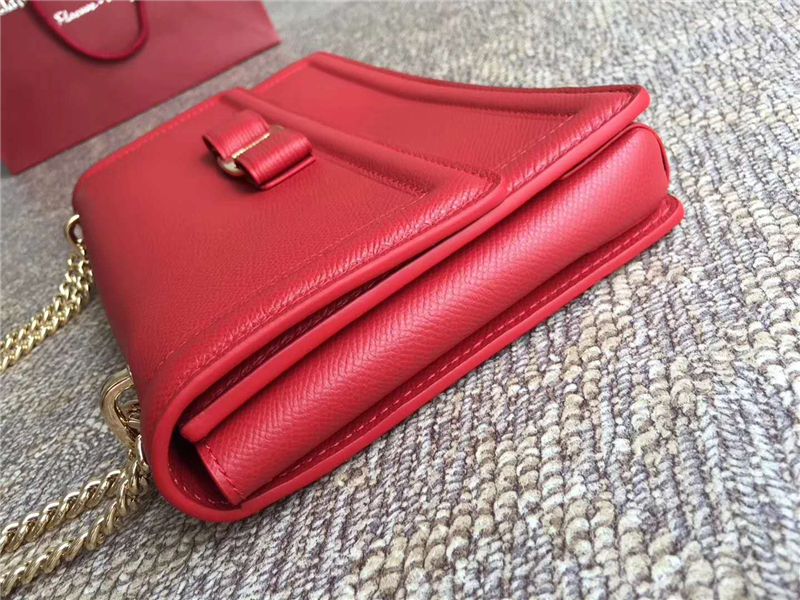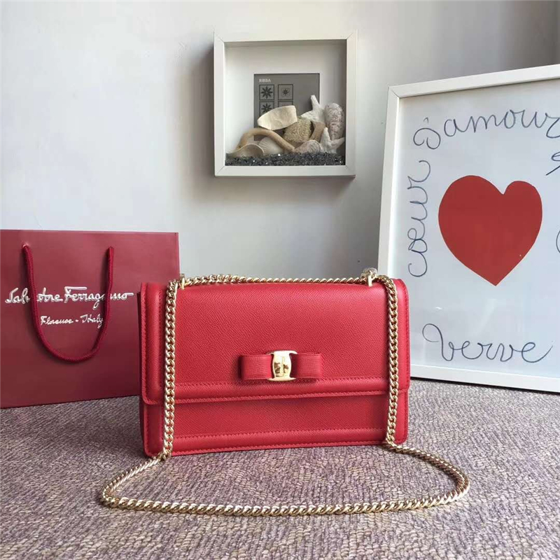21G462 Ferragamo菲格拉慕 手掌紋牛皮 Vara蝴蝶結 大號 鏈條翻蓋包 紅色