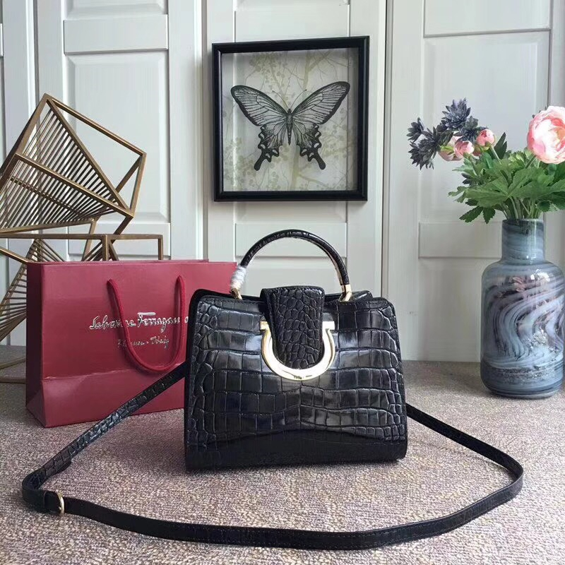 當前位置: 首頁>Ferragamo|菲拉格慕>Ferragamo女包> 21G596 Ferragamo 菲格拉慕包包 鱷魚紋單肩包 Gancini 鏈條翻蓋包 黑色