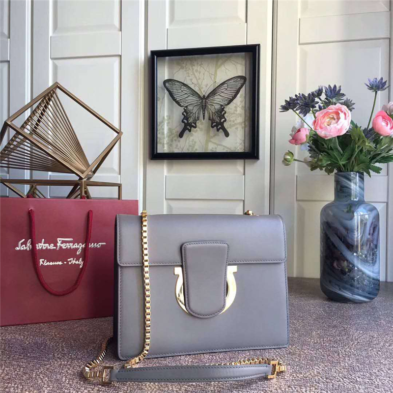 當前位置: 首頁>Ferragamo|菲拉格慕>Ferragamo女包> 21G671 Ferragamo 菲拉格慕 半環搭扣 小牛皮 大號翻蓋 鏈條包 灰藍