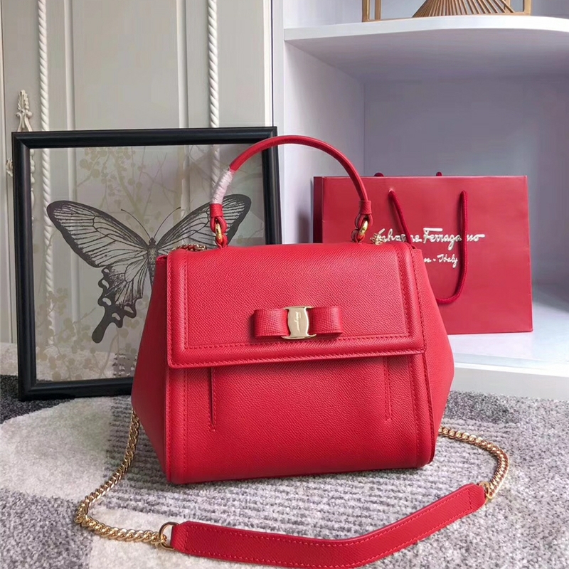 21G697 Ferragamo菲格拉慕手提袋 Vara蝴蝶結 大號 手掌紋牛皮 翻蓋包 大紅