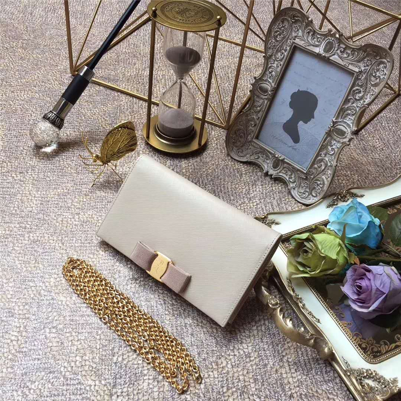 22B875 Ferragamo 菲拉格慕 淡金色Vara蝴蝶結 多功能小包 白色