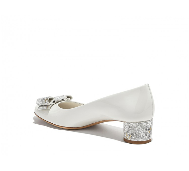 688286 Ferragamo菲拉格慕 馬賽克VARA 牛皮 蝴蝶結(jié)高跟鞋 白色