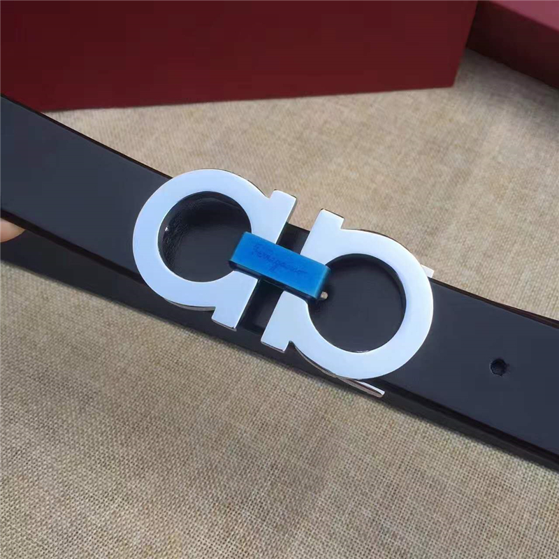 • Salvatore Ferragamo 菲拉格慕 雙面原版皮 腰帶 商務休閑款 黑帶藍LOGO