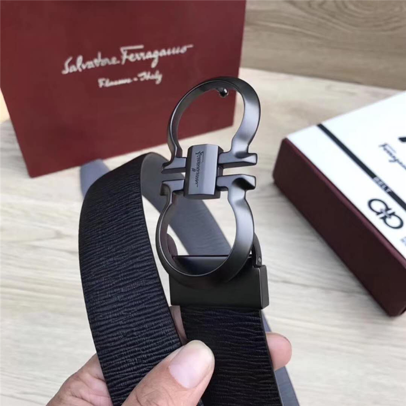 Ferragamo菲拉格慕 雙面樹(shù)枝牛皮紋 男士正裝腰帶 商務(wù)休閑款 黑帶黑扣