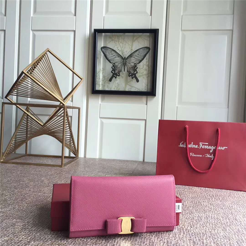 22A900 Ferragamo 菲拉格慕 Vara 蝴蝶結(jié)搭扣 女士長款翻蓋錢包 石楠紅