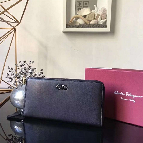 660418 Ferragamo錢包 U字形拉鏈 牛皮長(zhǎng)款 菲格拉慕男士手拿包 黑色