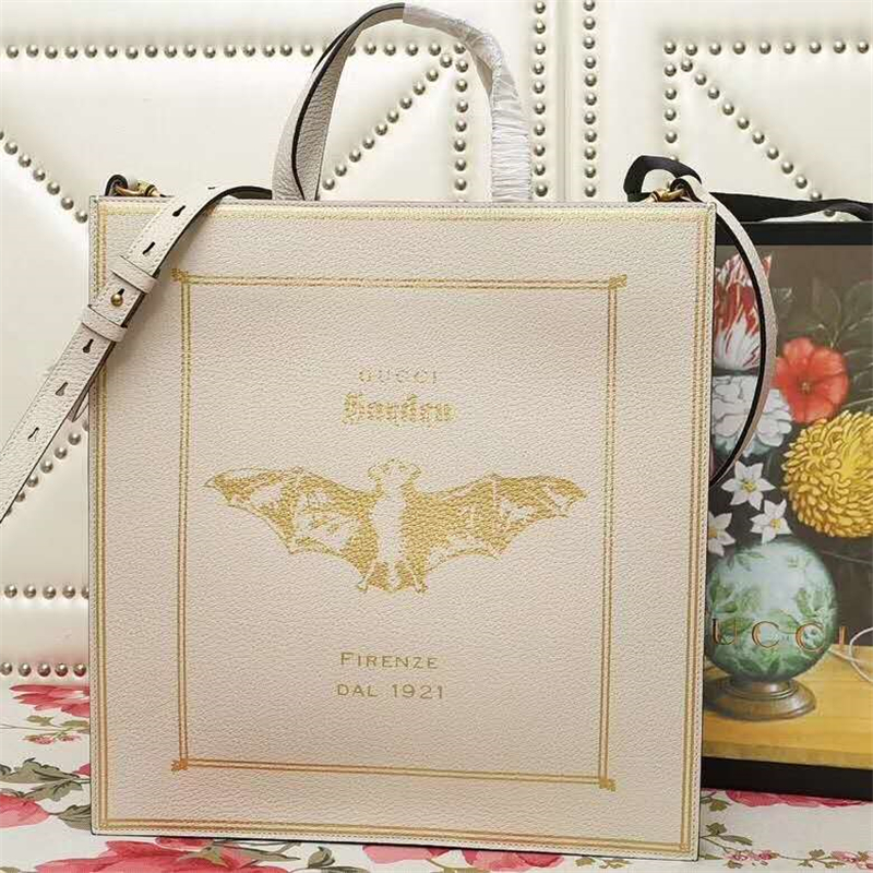• 450950 Gucci女袋 GG高級柔軟人造革 顆粒面 蝙蝠圖案 古馳購物袋 白色