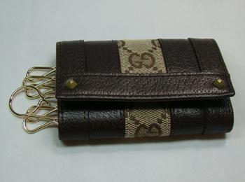 - 120846 GUCCI最新款 GUCCI鑰匙包 經(jīng)典款深啡色PU面料時尚男士鑰匙包