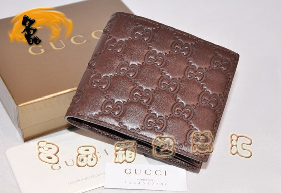- 212185 GUCCI最新款 牛皮壓花錢包 GUCCI短款錢包 GUCCI男包 卡包 啡色