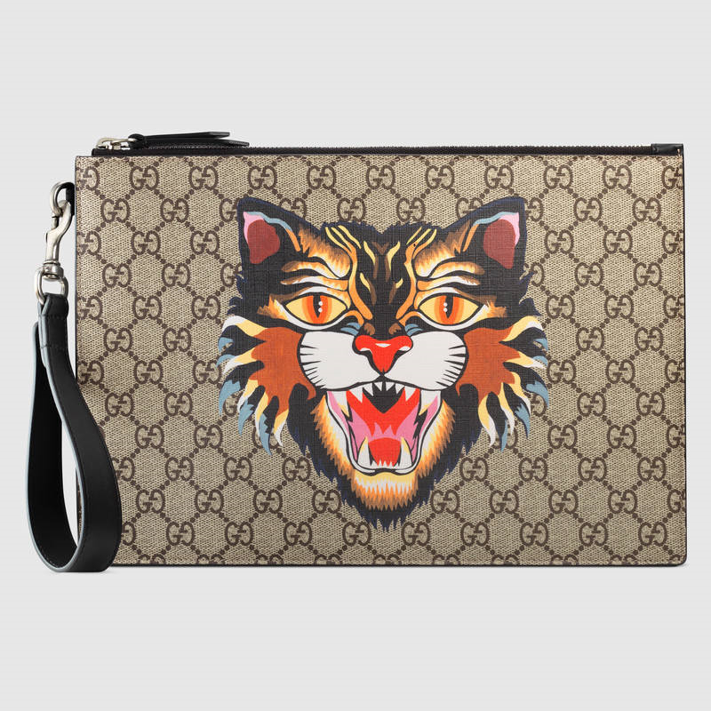 • 詳細介紹:加入貫穿在整個早秋男女裝系列中的氣場貓印花,并將其印在薄手拿包的中心位置。皮夾使用GG Supreme高級人造帆布制作,這是一種可分解的環保材料。米色/烏木色GG Supreme高級人造帆布,裝飾氣場貓印花,黑色皮革滾邊,可拆卸皮革腕帶