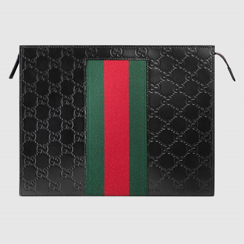 475316 Gucci古馳Signature材質壓花手拿包 Gucci手拿包 黑色