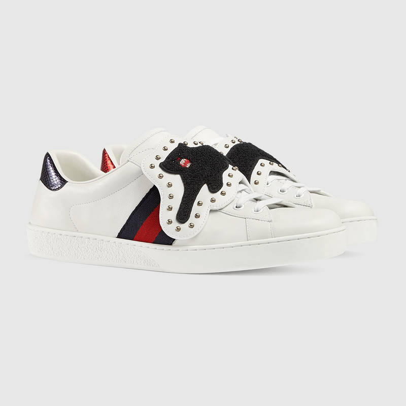 477107 GUCCI Ace系列 刺繡搭配釘珠黑豹 可拆卸貼飾 運動鞋 白色