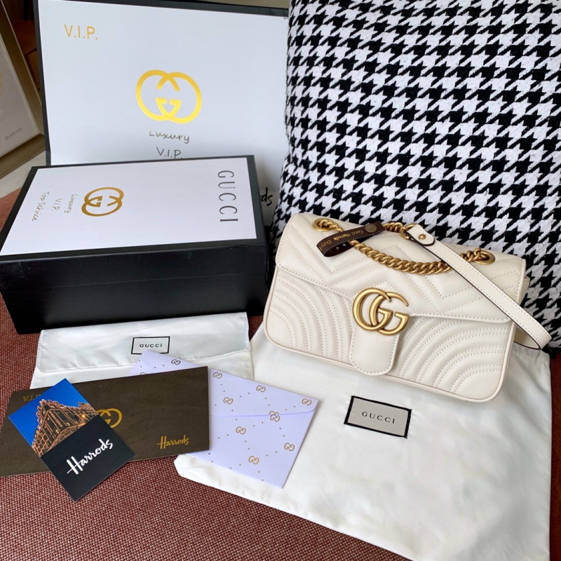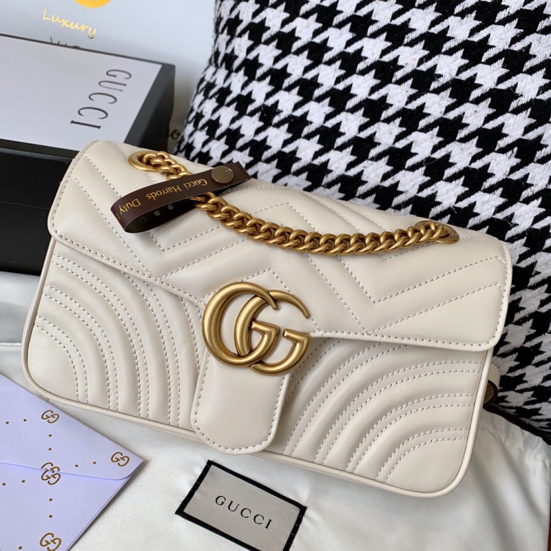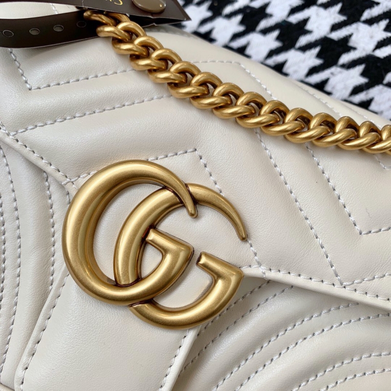 - 443497 Gucci GG Marmont系列小號絎縫肩背包 Gucci酒神包 白色