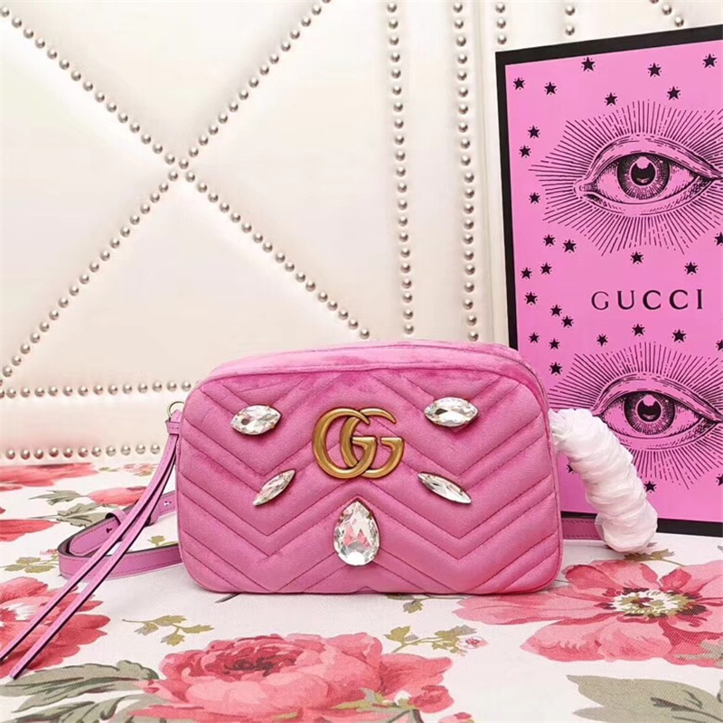 • 447632 Cucci女包 古馳手提包 Gucciu單肩包 古馳水晶包包 Gucci網紅包 粉紅色