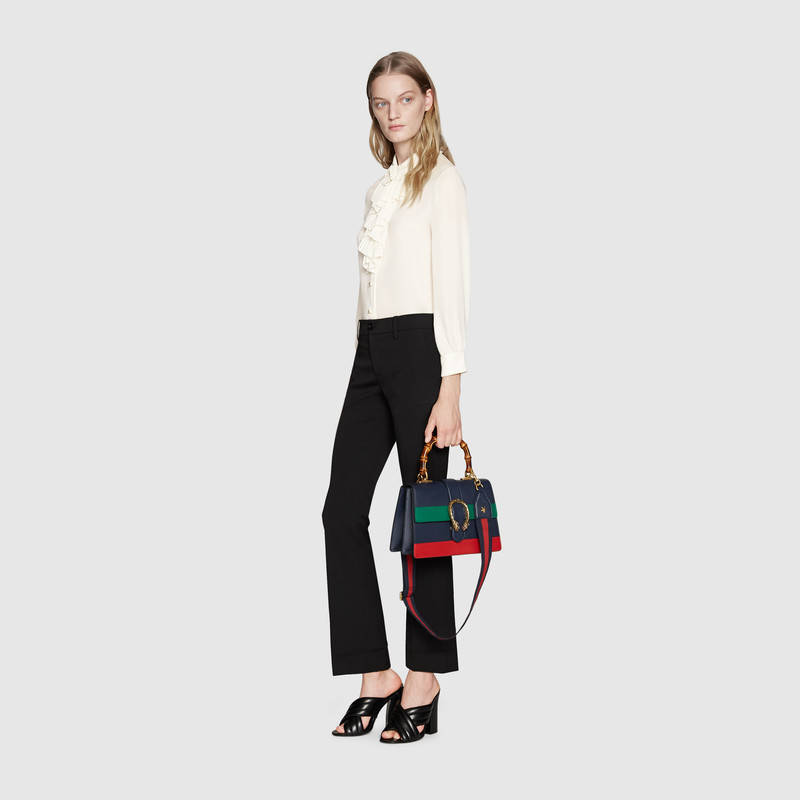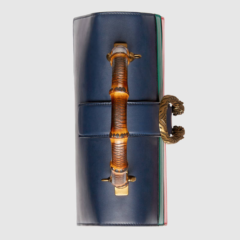 - 448075 GUCCI Dionysus 系列 皮革 竹節(jié)提手 手提肩背包 藍(lán)拼綠拼紅色