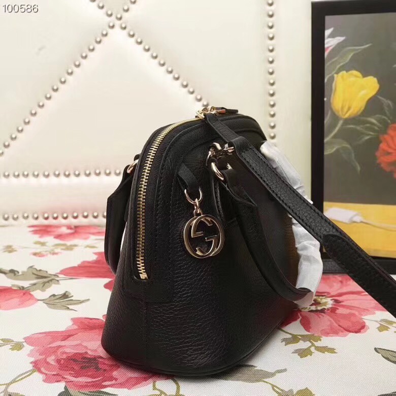 449661 Gucci女包 荔枝紋牛皮 手提斜跨 貝殼包 黑色