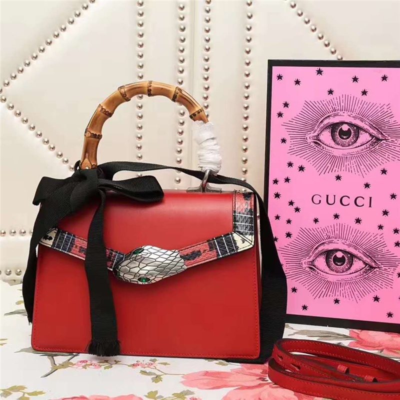453751 Lilith 2017款 綠寶石蛇頭 竹節(jié)提手 蝴蝶結(jié) 單肩斜跨包 紅色