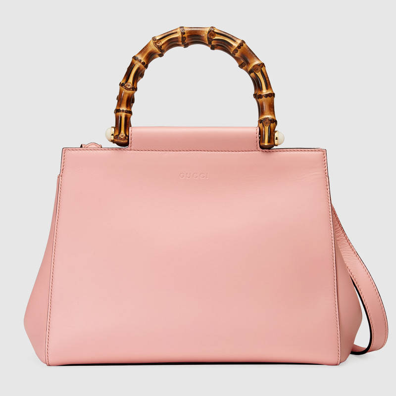 • 453767 Gucci Nymphaea 系列 皮革肩帶 竹節提手 手提包 淺粉色