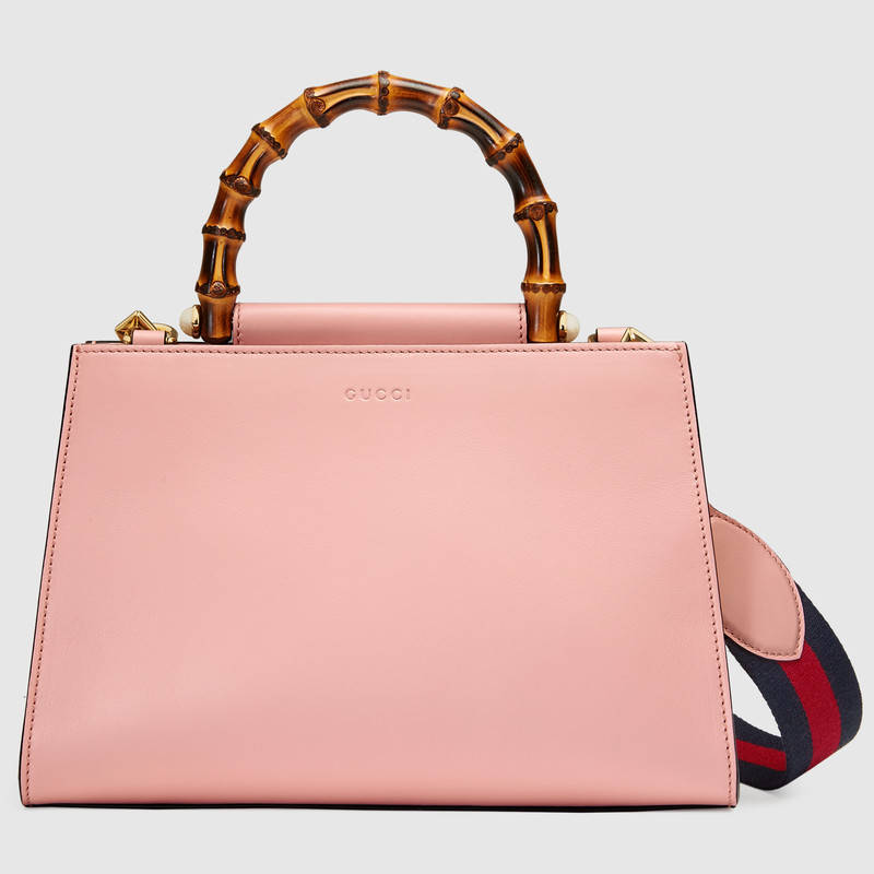 • 459076 Gucci Nymphaea 系列 皮革 織帶肩帶 竹節提手 手提包 淺粉色
