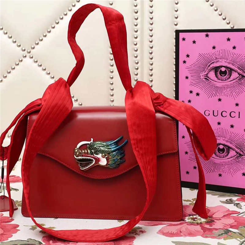 • 詳細介紹:Gucci 2017新款,主打中國風,原單品質 新款專柜品質,實物實拍!作為權力、力量和幸運的象征,龍形印花貫穿春夏女裝和男裝系列始終。使用琺瑯色黃銅精心打造,并采用真絲絲緞綁縛在肩帶上。采用光滑亮澤的皮革精心打造,表面結實,造型頗具結構感。