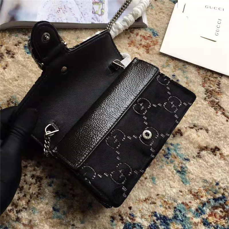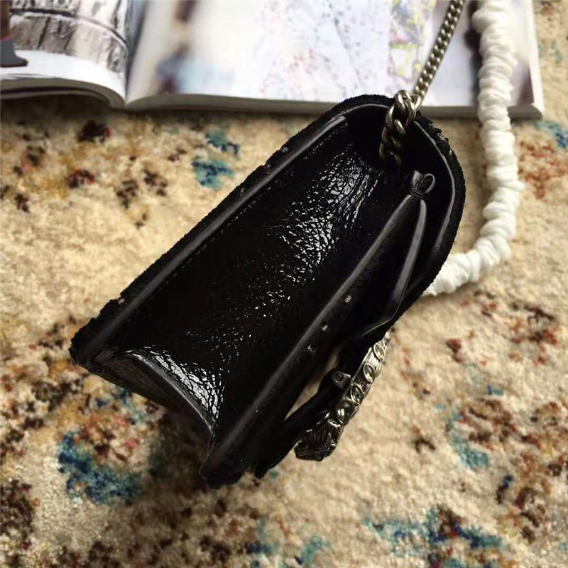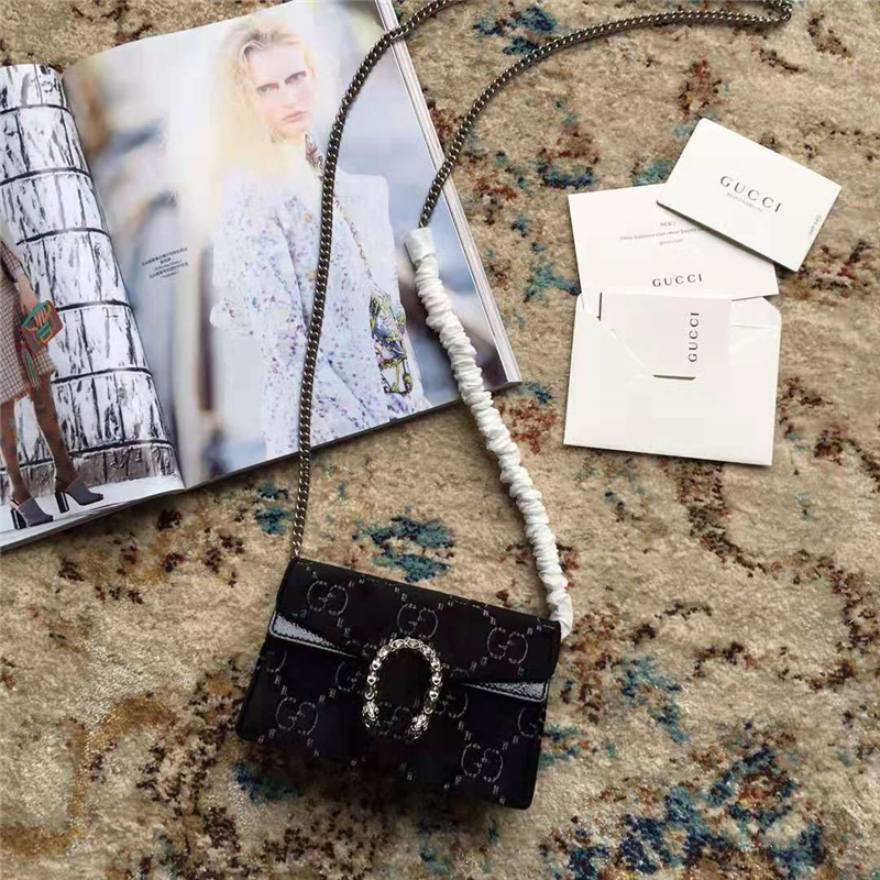 476432 Gucci女包 Dionysus系列 GG天鵝絨 水晶虎頭鎖扣 超迷你Gucci酒神包 黑色