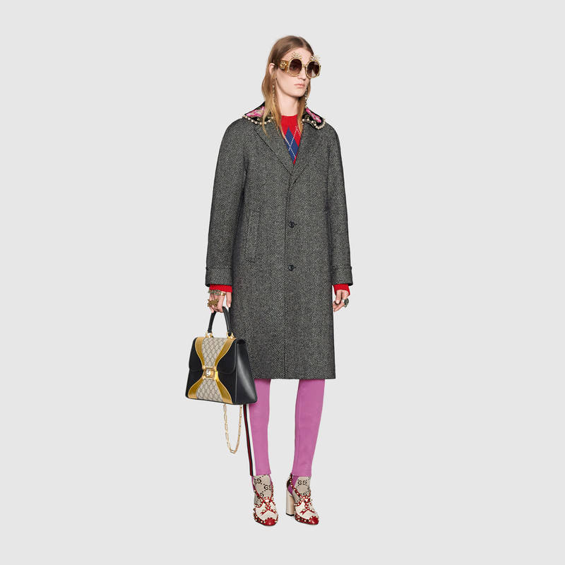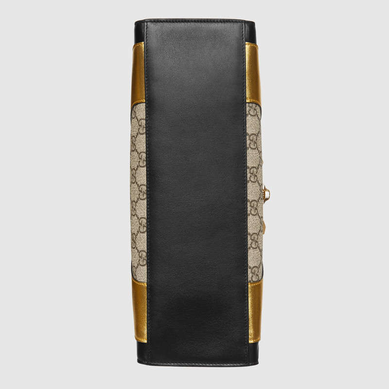 - 詳細(xì)介紹:中號(hào)手提袋采用金屬材質(zhì)檔案袋鎖扣,裝飾琺瑯虎頭并鑲嵌紅色水晶眼睛。虎頭已成為品牌頗具辨識(shí)度的設(shè)計(jì)標(biāo)識(shí)。GG Supreme高級(jí)帆布材質(zhì)由超細(xì)纖維并附雙G圖案涂層精心打造。抽象的設(shè)計(jì)融入柔軟皮質(zhì)搭配金色金屬光澤皮質(zhì)。