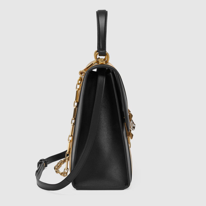 - 476435 GUCCI GG Supreme高級(jí)人造帆布和皮革 手提包 黑配金