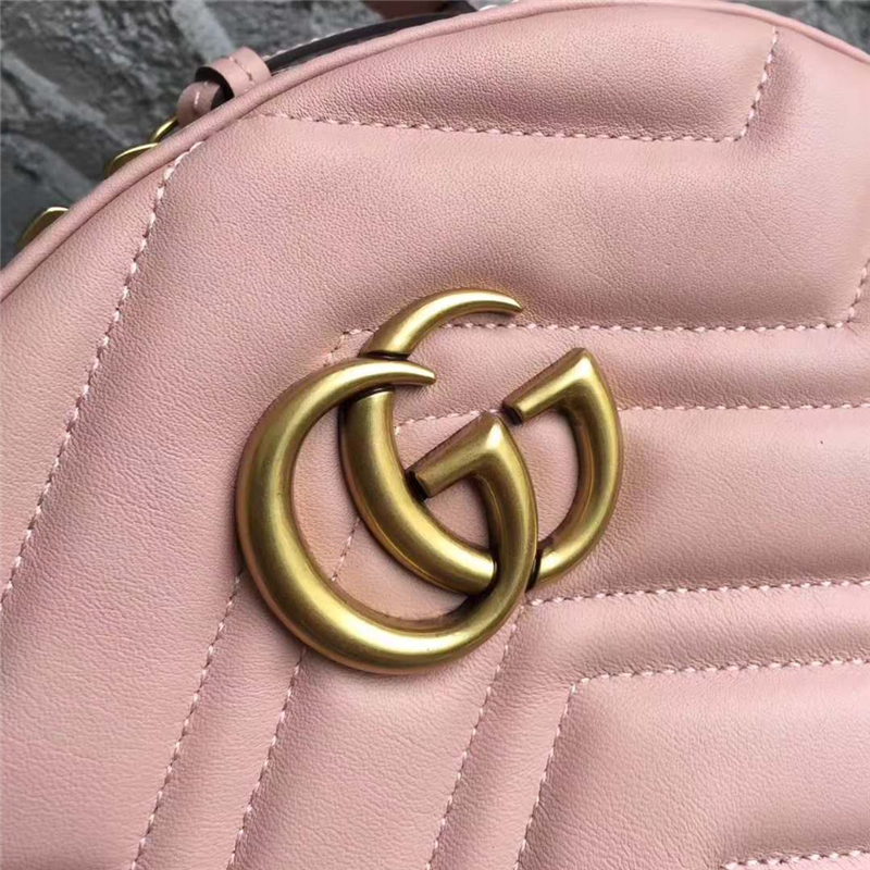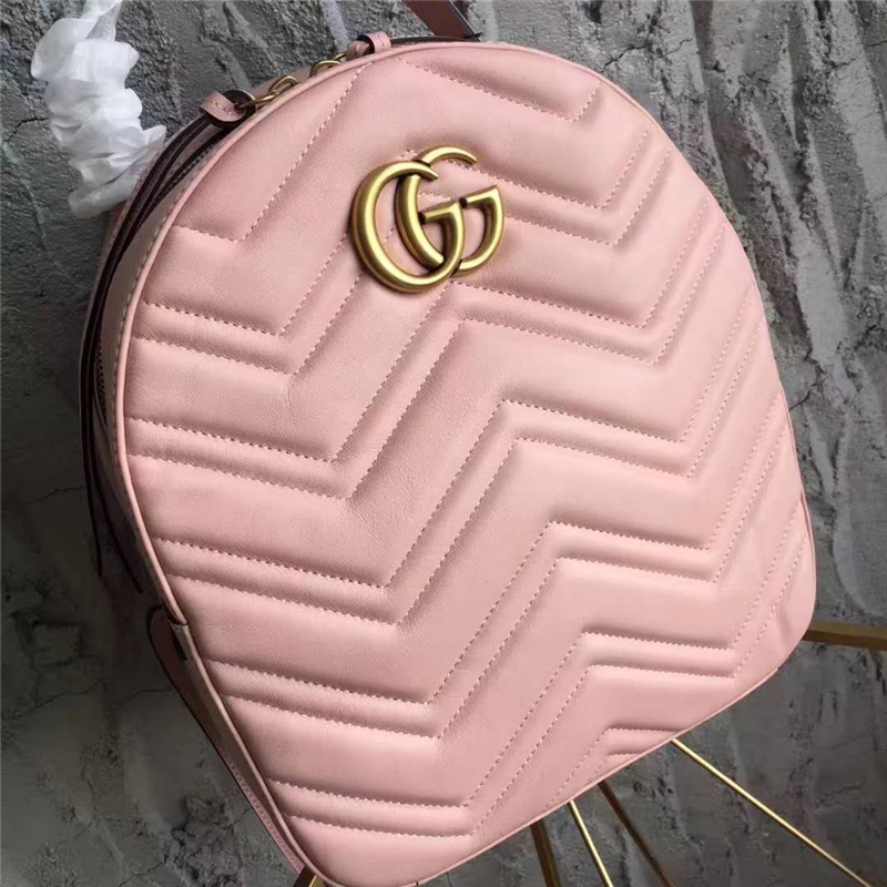 476671 GUCCI GG Marmont系列 絎縫 皮革 雙肩包 粉色
