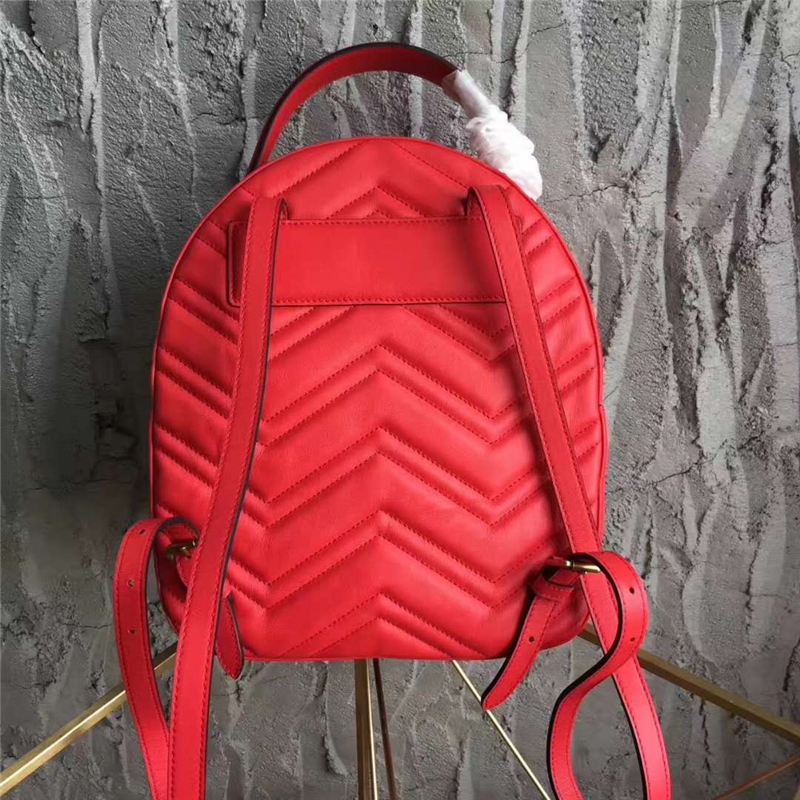 476671 GUCCI GG Marmont系列 絎縫 皮革 雙肩包 紅色