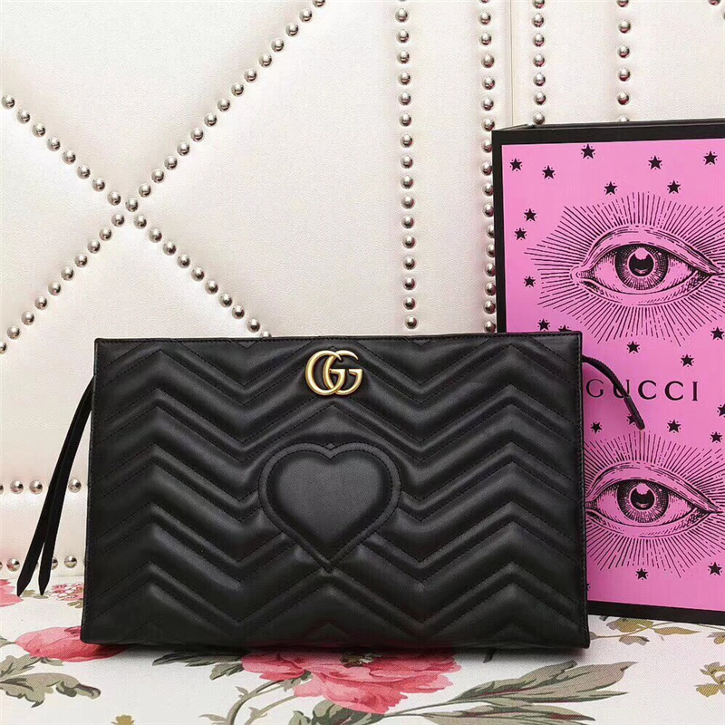 488450 Gucci包包 古馳手拿包 波浪紋鏈條包 進(jìn)口小牛皮 黃銅 黑色