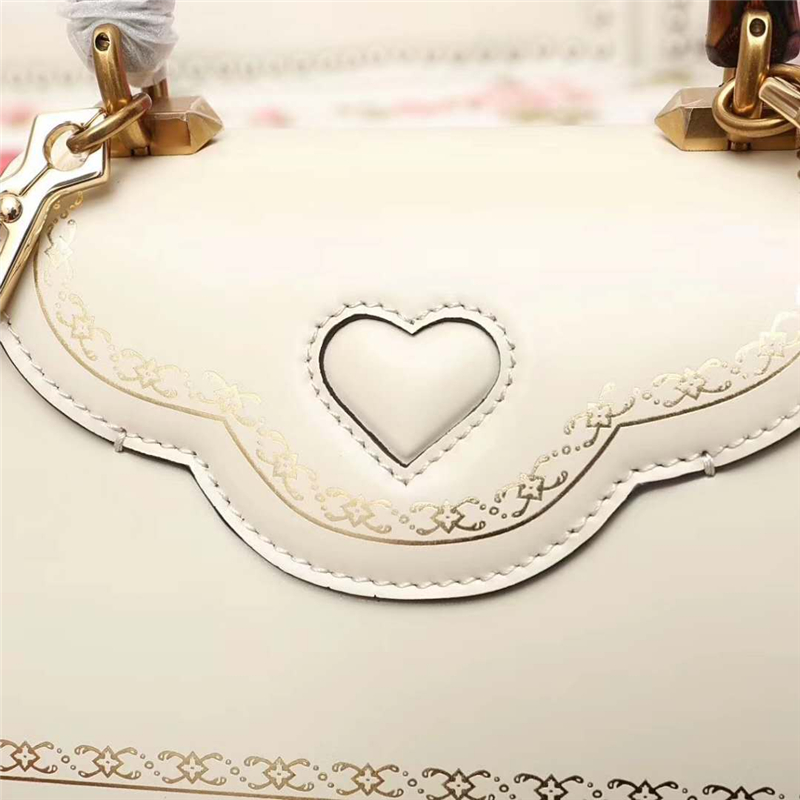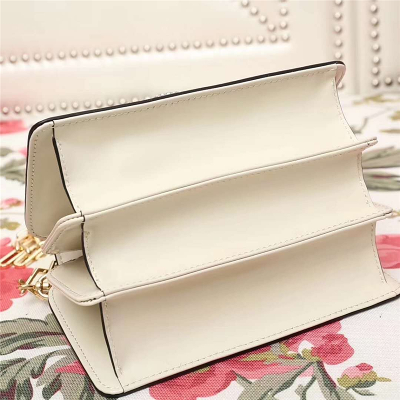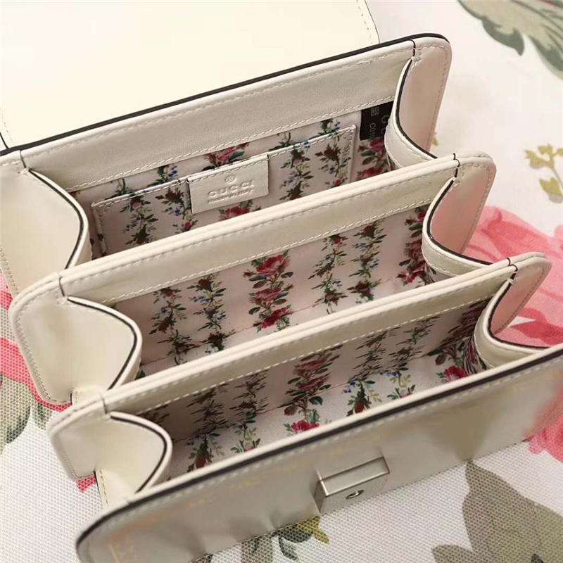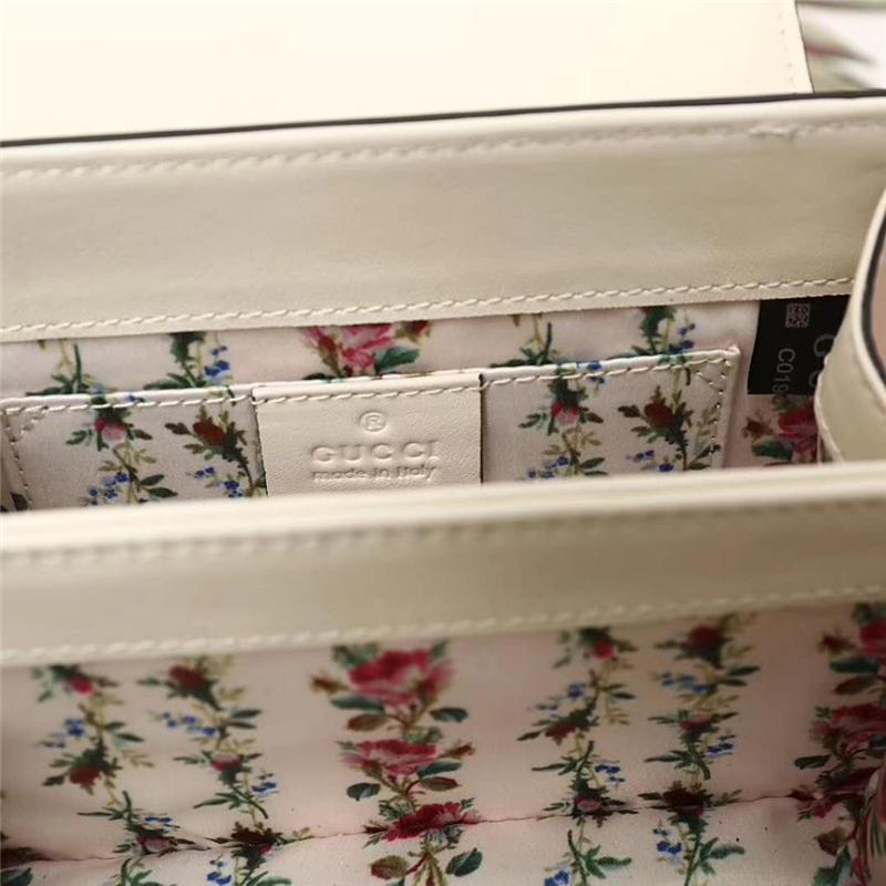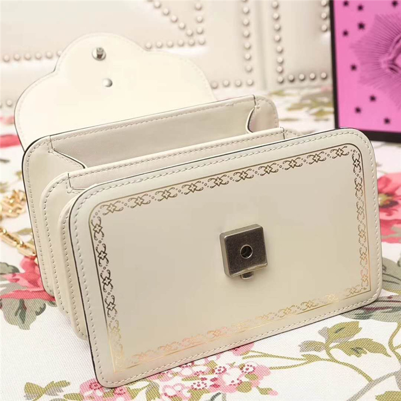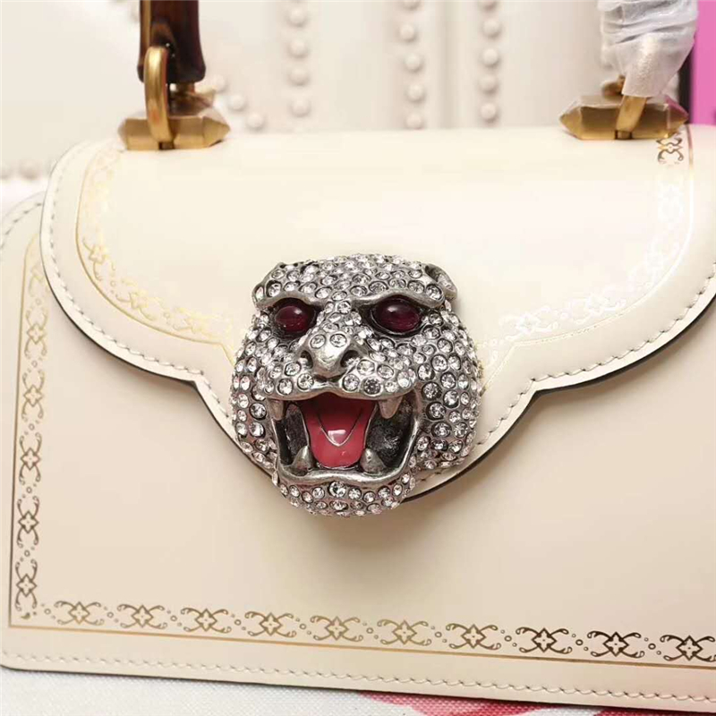 - 488667 Gucci 翻蓋 豹頭鑲鉆 竹節(jié)提手 鏈條手提風(fēng)琴包 白色