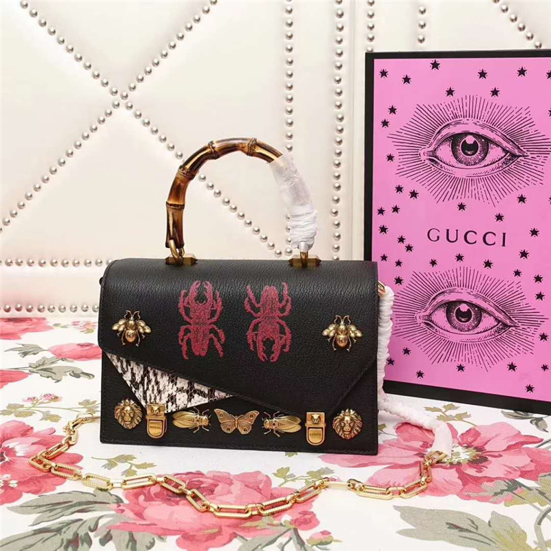 - 488715 Gucci ottilia 2017秋冬系列 撞色蛇皮 昆蟲印花 手提袋 黑色