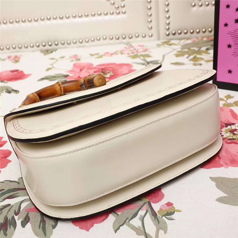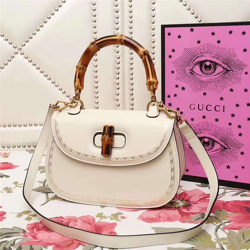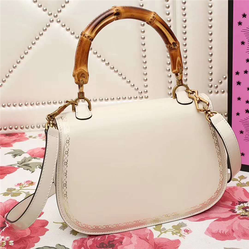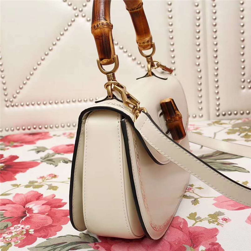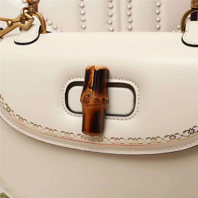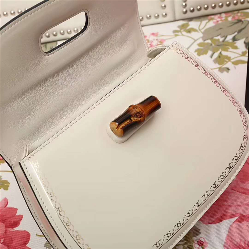 • 488800 GUCCI 翻蓋圓邊 花邊裝飾 竹節(jié)手柄 手提肩包 白色