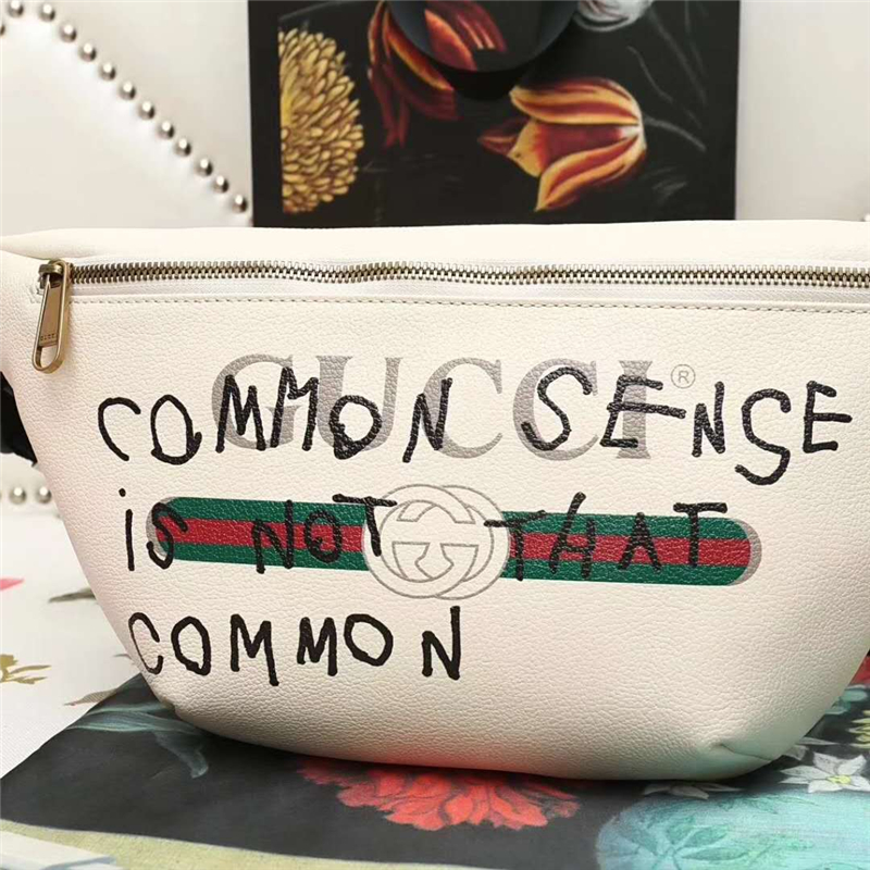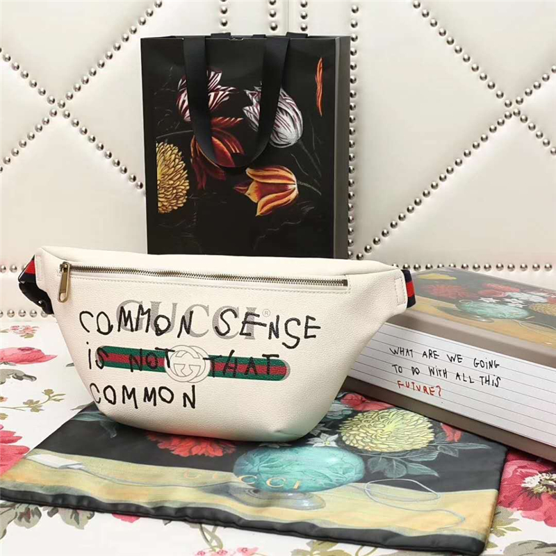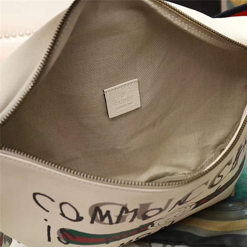 - 493869 GUCCI 新款大貨 進(jìn)口牛皮 彩印涂鴉 休閑腰包 白色