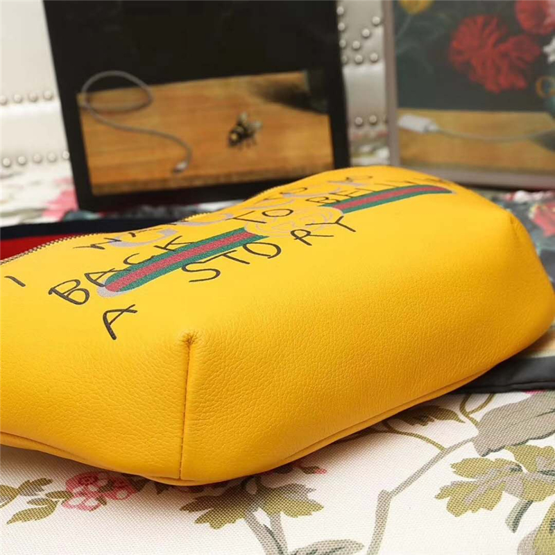 - 493869 GUCCI 新款大貨 進(jìn)口牛皮 彩印涂鴉 休閑腰包 黃色
