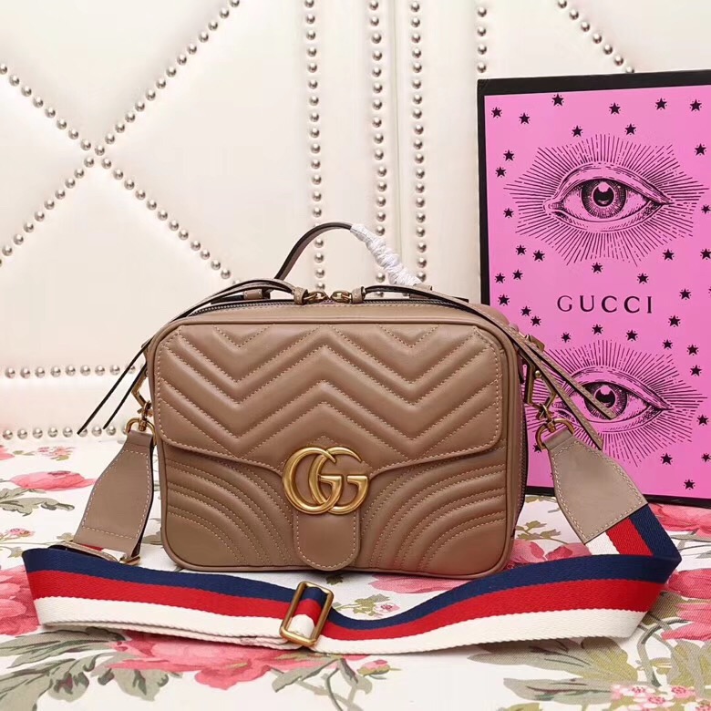 498100 Gucci GG Marmont系列 絎縫 翻蓋 肩背包 棕色